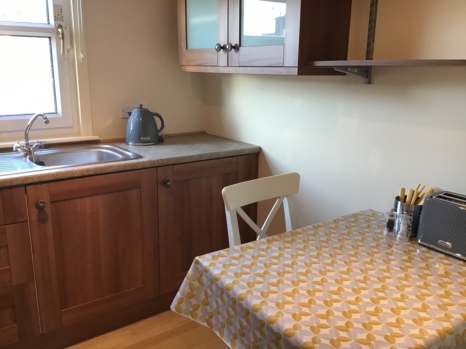 The Buchanan is a one bedroom self catering apartment on the second floor. There is a superking bed (two singles on request) and a comfortable TV lounge. There is a shower room with complimentary toiletries and a breakfast kitchen with microwave/convector oven, two ring ceramic hob and a refrigerator.